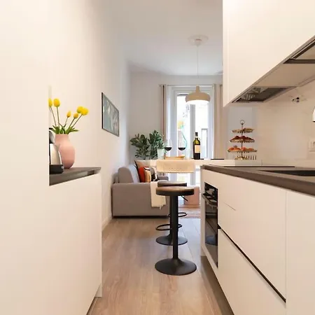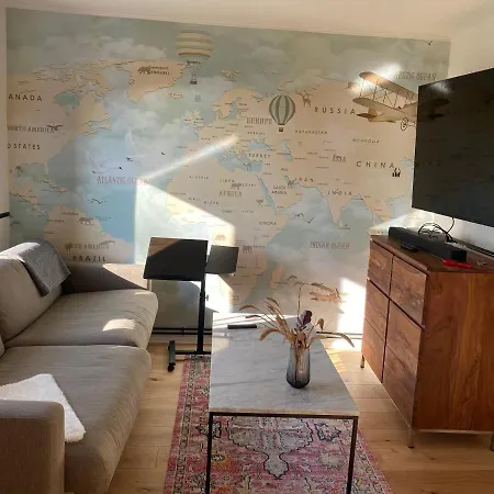 The apartment also features an equipped kitchen with a fridge and oven.